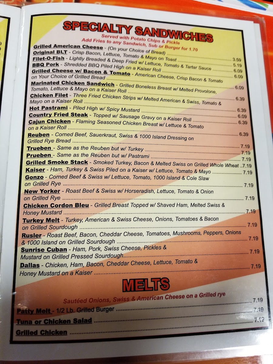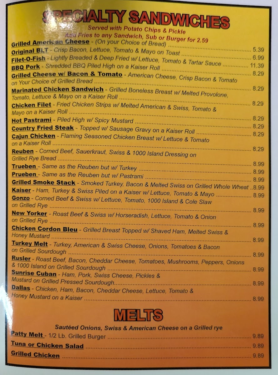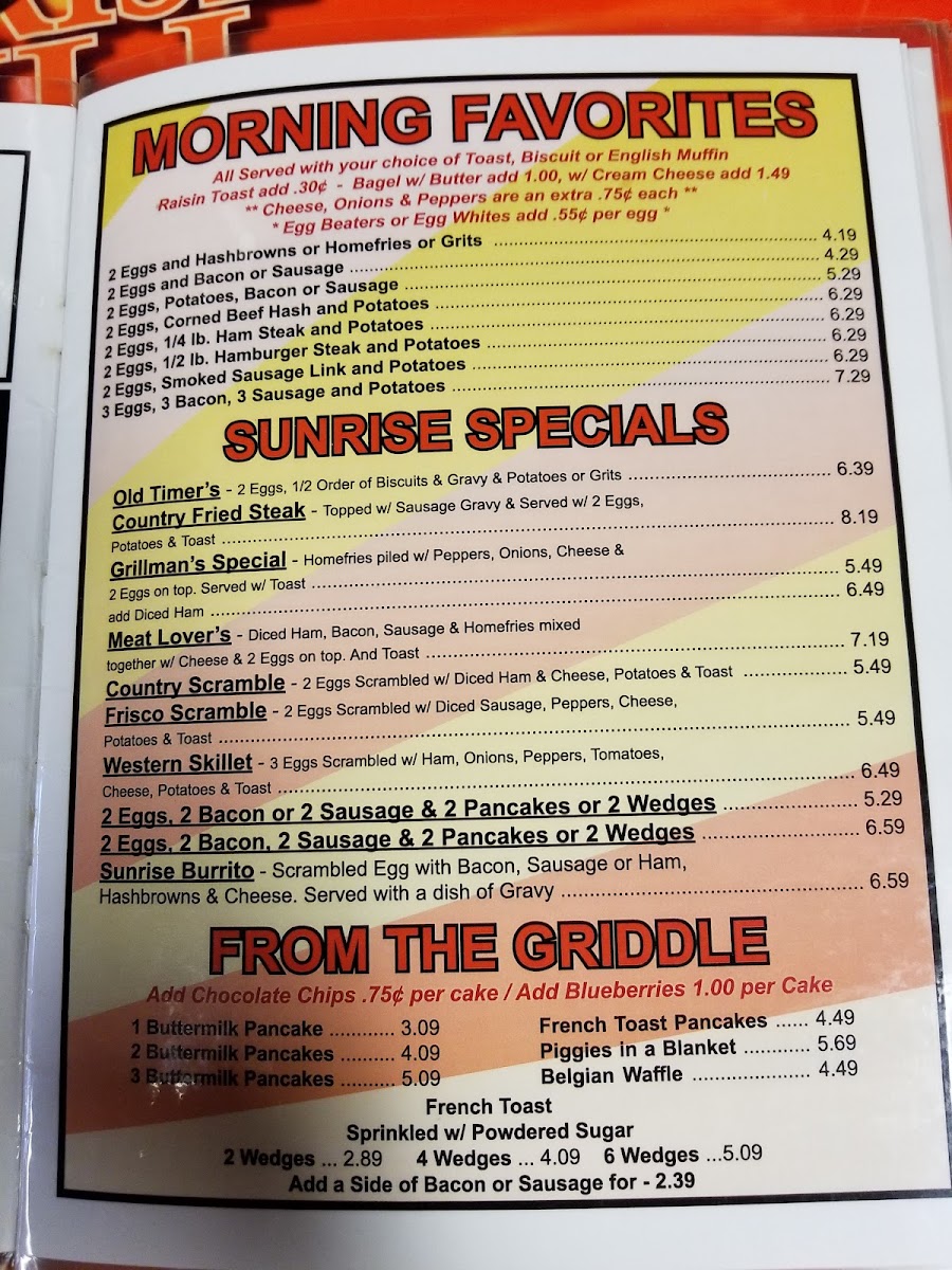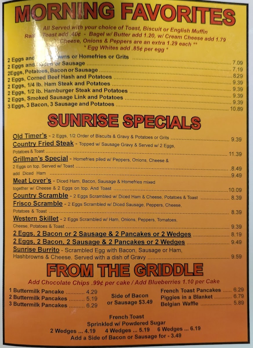 Sunrise Grill Menu