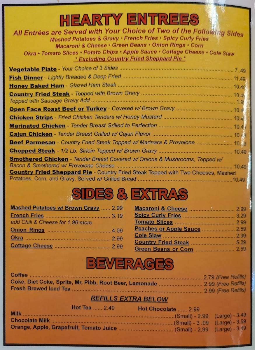 Drinks complement the menu with simple, dependable options like freshly brewed coffee and creamy grits, creating a balanced, approachable dining experience suited for early mornings or leisurely afternoons. Overall, the fare here fits naturally with the friendly, small-town vibe of the restaurant, inviting guests to enjoy hearty flavors in a relaxed setting.